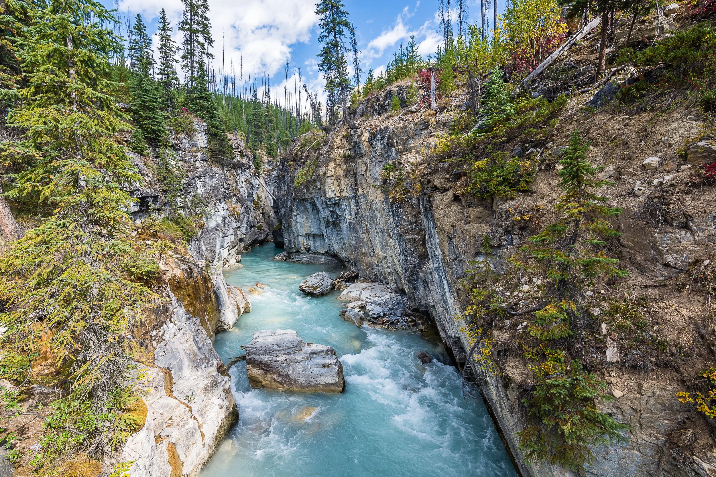 Drive a stunning scenic drive to Kootenay, offering stunning mountain landscapes and that showcase the best of the Canadian Rockies. Highlights include exploring the dramatic Marble Canyon and relaxing in the soothing waters of Radium Hot Springs.